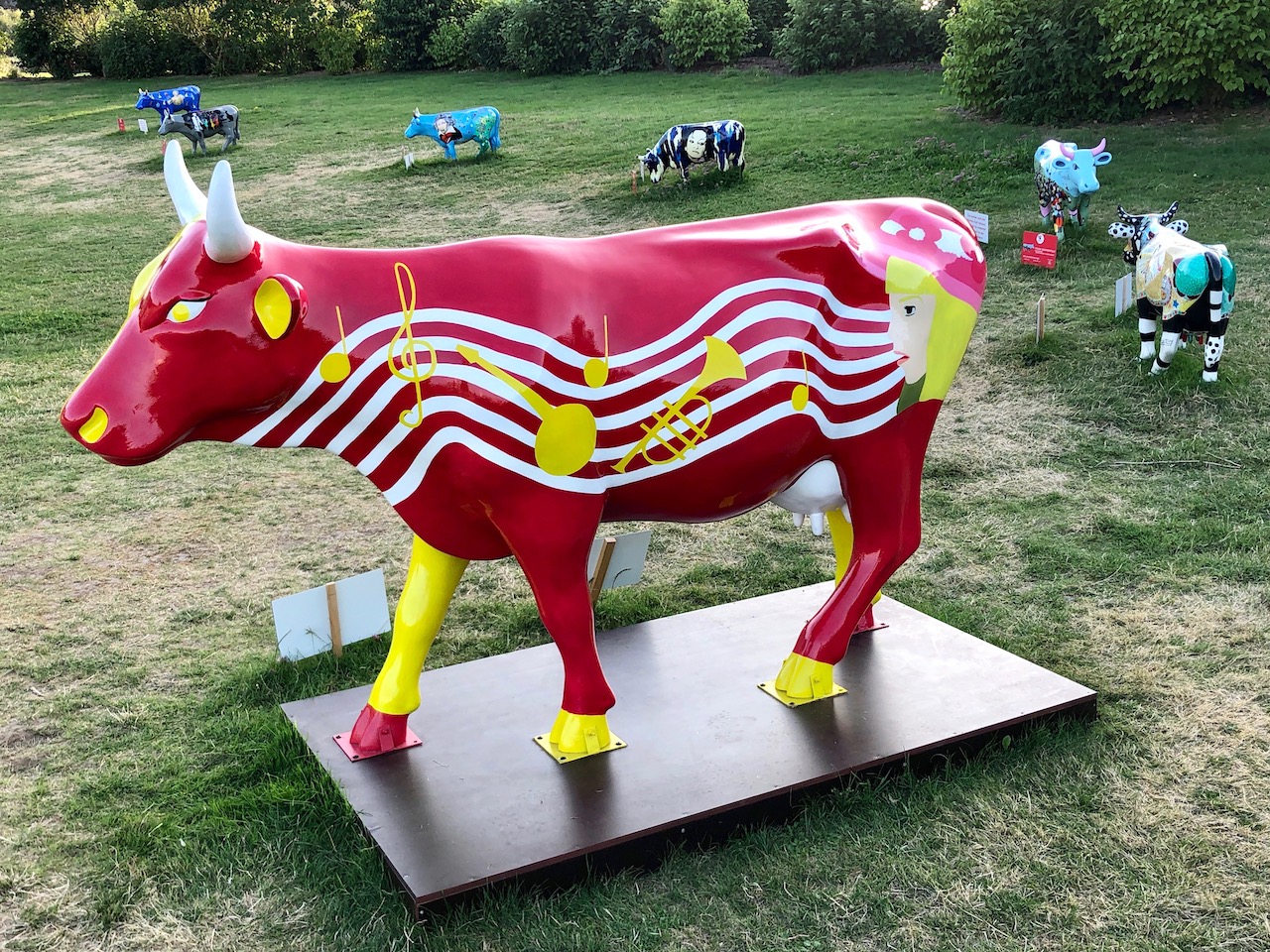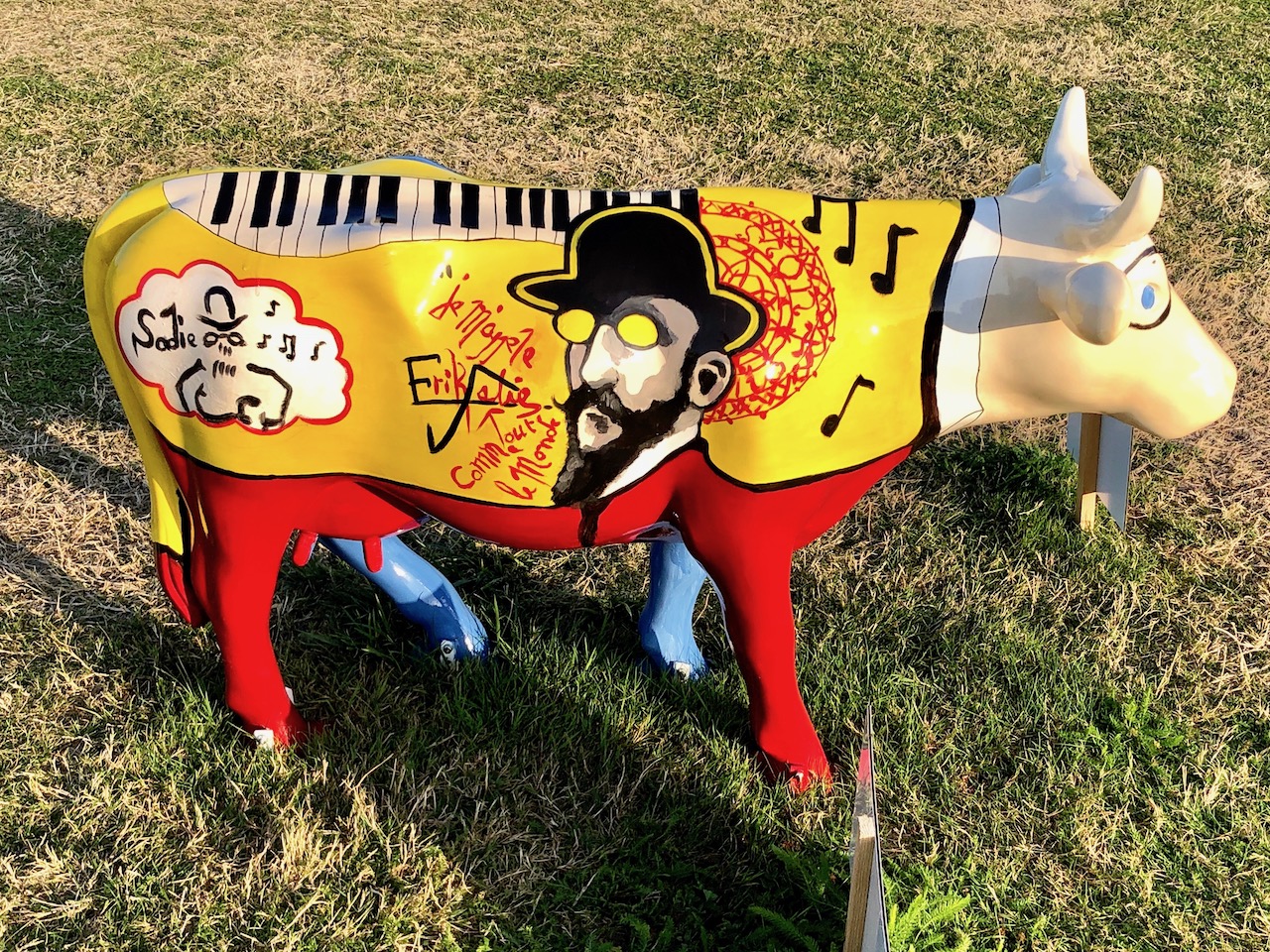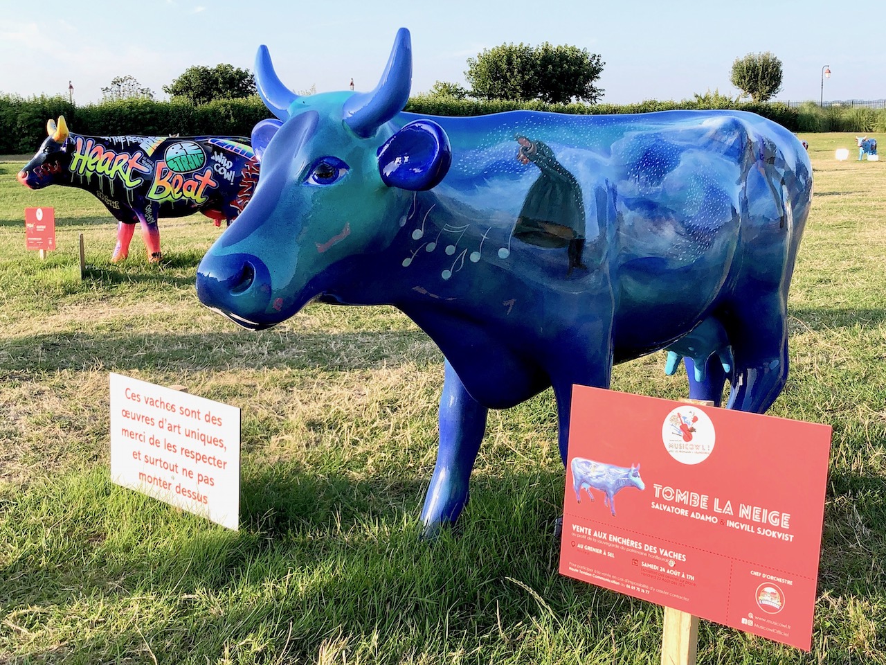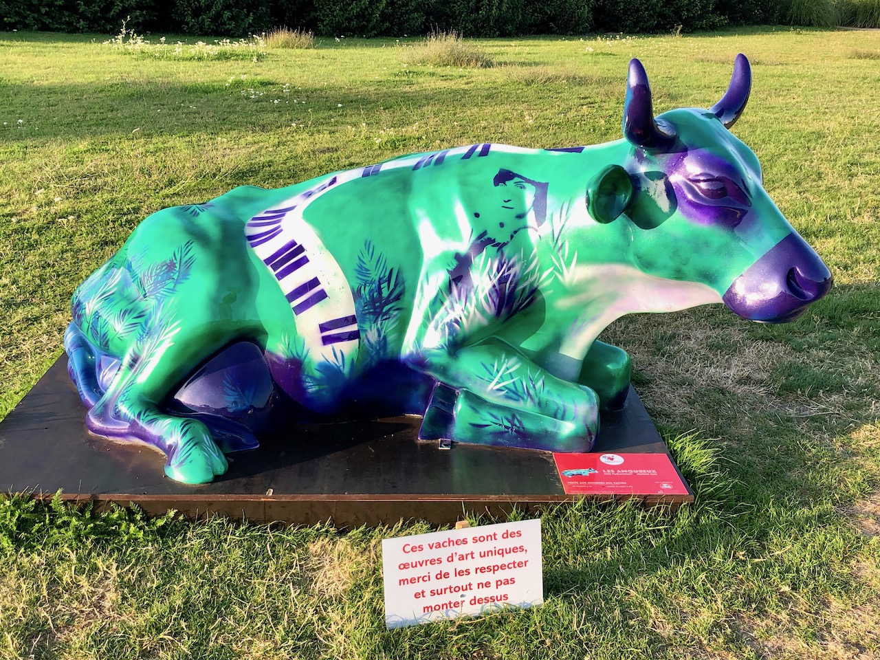 MUSICOW'L - Dans le jardin des Célébrités à Honfleur des artistes régionaux et nationaux ont customisé 39 vaches en s'inspirant de chansons contemporaines et d'oeuvres musicales - A vous de jouer pour retrouver les personnalités du monde de la musique telles que Charles Aznavour (Emmenez-moi), Ludvig Beethoven (La symphonie pastorale / la sonate au clair de lune) associées à des artistes.