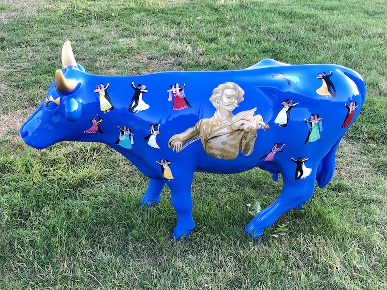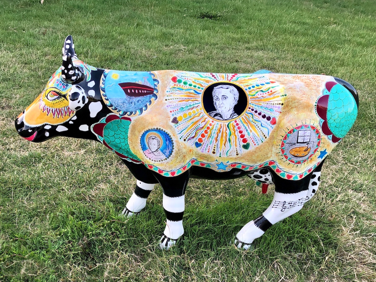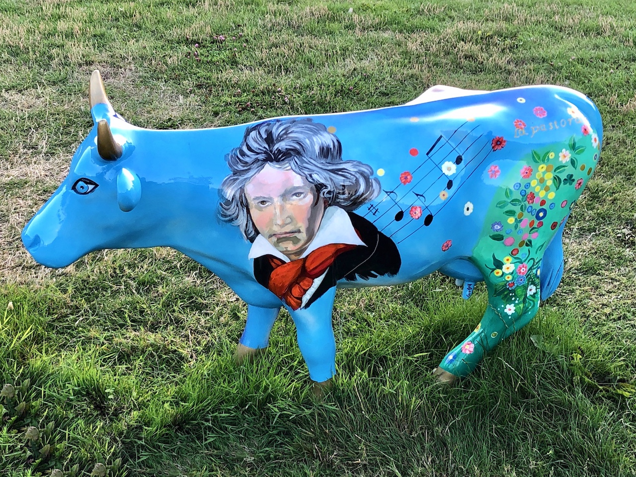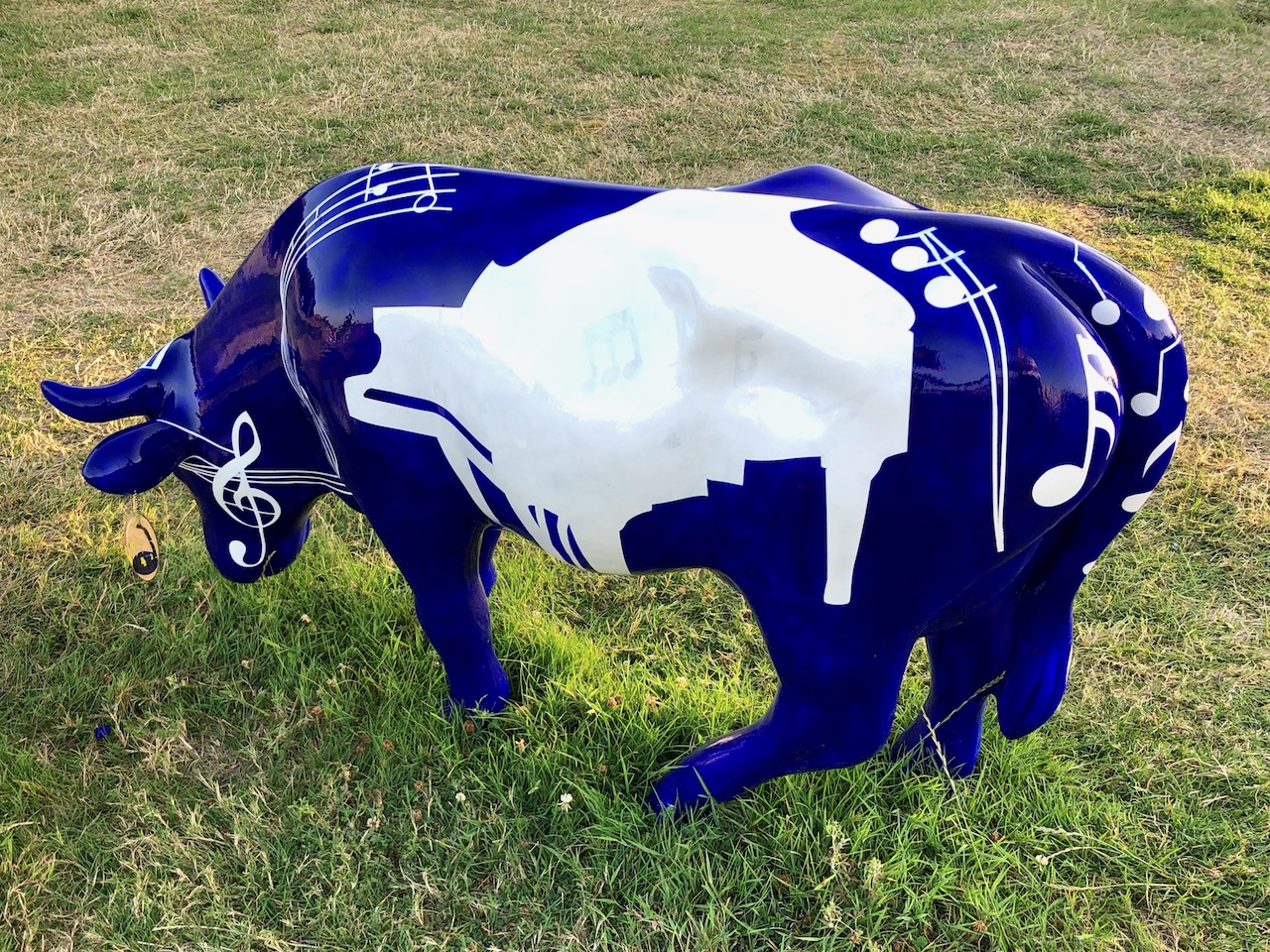 MUSICOW'L - Dans le jardin des Célébrités à Honfleur des artistes régionaux et nationaux ont customisé 39 vaches en s'inspirant de chansons contemporaines et d'oeuvres musicales - A vous de jouer pour retrouver les personnalités du monde de la musique telles que Charles Aznavour (Emmenez-moi), Ludvig Beethoven (La symphonie pastorale / la sonate au clair de lune) associées à des artistes.
