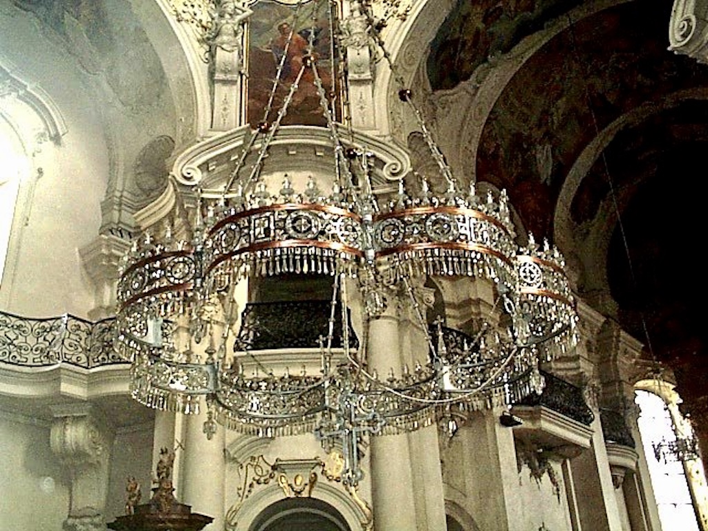 Horloge astronomique, un lustre en bronze et en cristal église Saint-Nicolas, hôtel V.J ROTT.